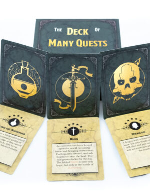 Whether you’re new to Dungeon Mastering or a seasoned Game Master searching for fresh ideas, The Deck of Many Quests is your key to endless adventure. With 200 carefully designed cards, each beautifully printed on durable cardstock and packaged in a robust, magnetically-closed box, you’ll unlock more than 200,000 unique quest combinations at your fingertips.